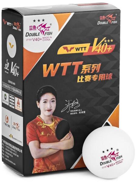 Double Fish V40+ 3-Star WTT pingponglabda (6 db/doboz)A Double Fish V40+ 3-Star WTT pingponglabda a kínai gyártó legújabb generációs plasztik pingponglabdája, amelynek anyag összetétele újdonság. 2021-2024 között a WTT versenyek hivatalos pingponglabdája! A Double Fish V40+ 3-Star WTT a plasztik labdák között talán az egyik legjobb, mert a kínai cég saját gyárában készül, és a korábbi labdához képest, az új ABS technológia felhasználásának köszönhetően még tartósabb és kerekebb. A labda felszíne speciálisan kezelt, ezért sokkal jobban lehet megpörgetni. A két félgömbből összehegesztett labda varrata nagyon vékony, s ezért a labda keménysége szinte mindenhol azonos. A Double Fish labdákat az alábbi versenyeken használtak és használják:
